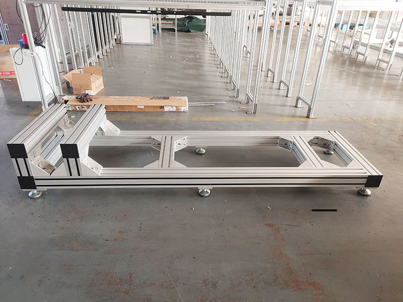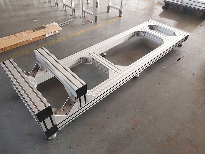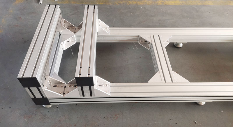 作為工廠精密設(shè)備的支撐底座,使用100100鋁型材,非常堅(jiān)固,底部安裝6個(gè)金屬蹄腳,承重力強(qiáng),外觀精美不生銹,橫梁可調(diào)節(jié)位置,方便機(jī)器安裝。